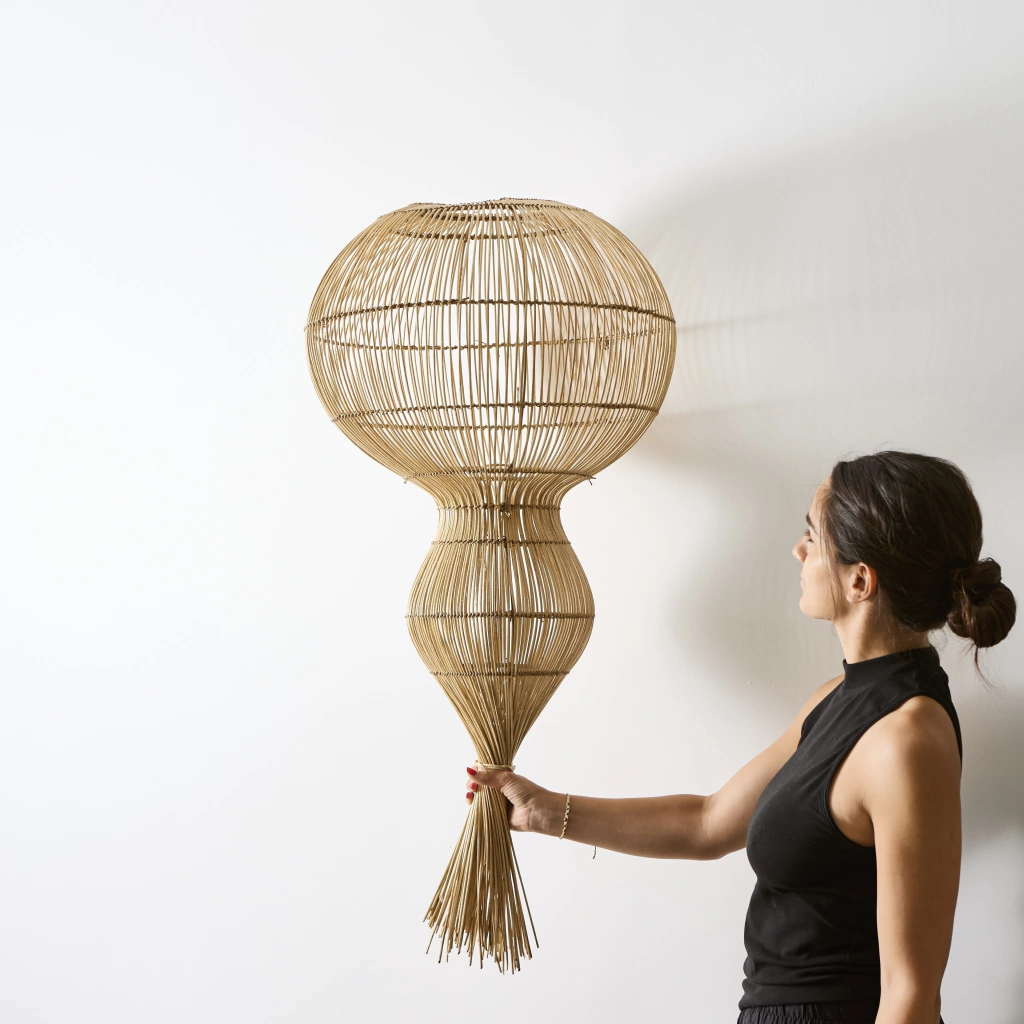 Pantalla Tulipa elaborada con fibras naturales, que aporta un toque cálido y elegante a cualquier espacio. Su diseño ligero y resistente es ideal para quienes buscan una decoración sostenible y con estilo. No incluye instalación eléctrica, lo que facilita su personalización según tus necesidades. Perfecta para crear ambientes acogedores y llenos de personalidad.